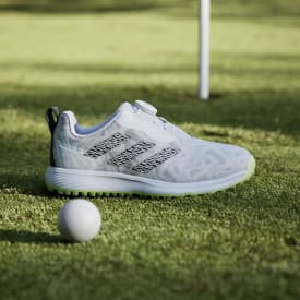 Bring some attitude to your game in these kids' adidas golf shoes. With a cushy Cloudfoam midsole and spikeless Adiwear outsole with V-Traxion, they deliver all-day comfort and a secure, confident stance from drive to putt. Dial in small adjustments with the BOA® Fit System so you get the perfect feel on every swing. You can play through light showers and head to the post-round hang with dry feet thanks to the waterproof upper. By choosing recycled, we are able to reuse materials that have already been created, which helps to reduce waste. Renewable materials choices will help us to remove our reliance on finite resources. Our products made with a blend of recycled and renewable materials feature at least 20% total of these materials.