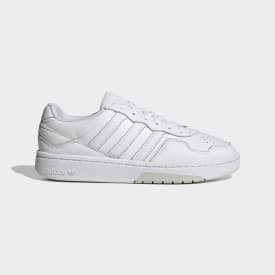 New eras call for new looks. That's exactly what we've done with these adidas shoes. They have a classic style inspired by basketball, skate and aerobics, but with a fresh take that tells the story of now. Super soft, luxurious leather combined with unique cut lines gives you an elevated but laid-back look. Pair them with bootcut jeans and a crewneck sweatshirt and you're ready to go. Made in part with recycled content generated from production waste, e.g., cutting scraps, and post-consumer household waste to avoid the larger environmental impact of producing virgin content.