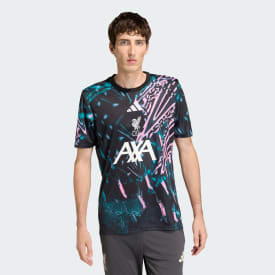 Show up to the pitch with confidence in the Liverpool FC 25/26 Pre Match Jersey. Inspired by the city's grunge music scene, this jersey features an all-over print that pays homage to classic adidas x LFC graphics. Made for on-field training, it combines style with performance, making it a must-have for Liverpool fans. The slim-fit design offers a streamlined look, while an interlock construction provides durability and a soft feel against the skin. Integrated Aeroready technology is designed to manage your body’s sweat, using wicking materials to keep you feeling dry and comfortable longer. The embroidered logo and club crest add an extra touch of authenticity, showcasing your pride for your team. Whether you're training or cheering from the stands, this jersey is your go-to choice for style and functionality. Embrace the spirit of Liverpool with adidas, and let your passion for football shine through.