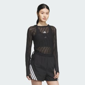 Who needs an occasion to make a statement? Around the house or around town, this adidas long sleeve tee is the only reason you need. Flattering and fitted with a distinctive shine, it has a subtle-yet-striking mesh print. Dress it up. Dress it down. Do your thing.