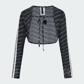 修身剪裁舞蹈披肩,飾有 adidas 字母組合圖案,展現優雅風格。