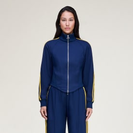修身剪裁的運動風褸採用斜紋布結構,造型突出。